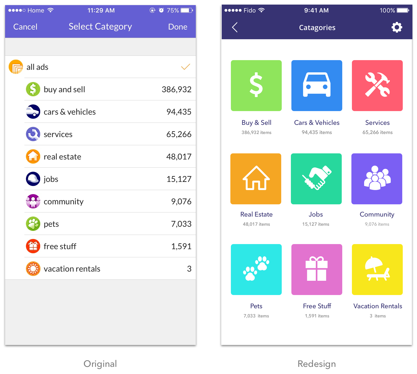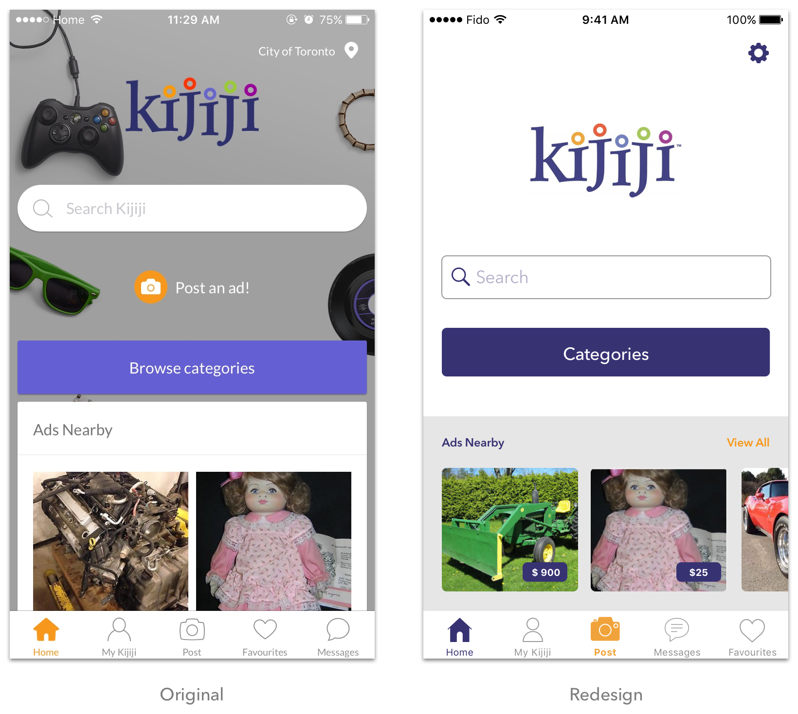- "Adds Nearby" section seems disturbing. It is too big and inconsistent compared to other items in the screen. Image placemnet in this section doesn't indicate that scrolling horizontally will show more nearby ads.