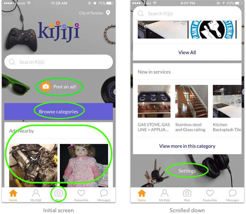 - “Brows Categories” button is too close to “Ads Nearby” section which makes is it less prominent and eye catching.